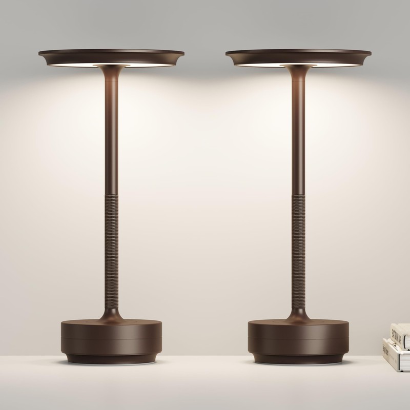 ZTFLOS 2 Pack Cordless Table Lamp, Rechargeable 5000mAh Outdoor LED Table Lamp, 3 Levels Brightness Dimming IP54 Waterproof Touch Battery Powered Table Lights, Dining Room/Patio/Nightstand (2P Brown)