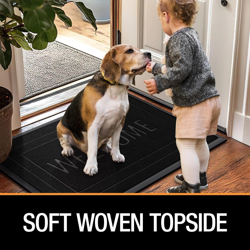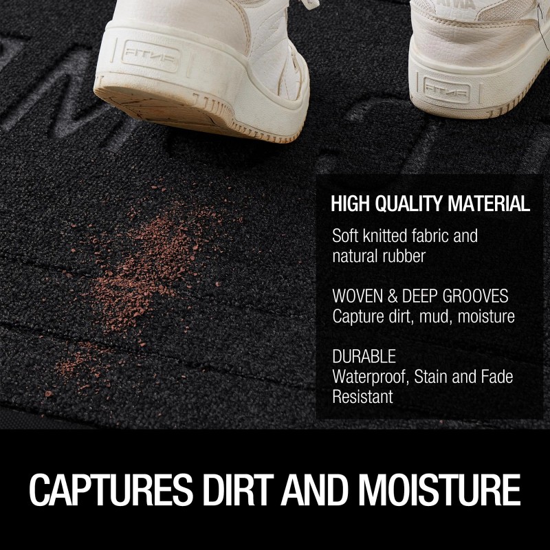 - HIGH QUALITY MATERIAL: doormat indoor entrance is made of high quality rubber backing + polypropylene knit fabric, the classic knit pattern grooves can effectively capture dirt, dust, and moisture from the soles of shoes and pets' paws to keep your indoor floor clean