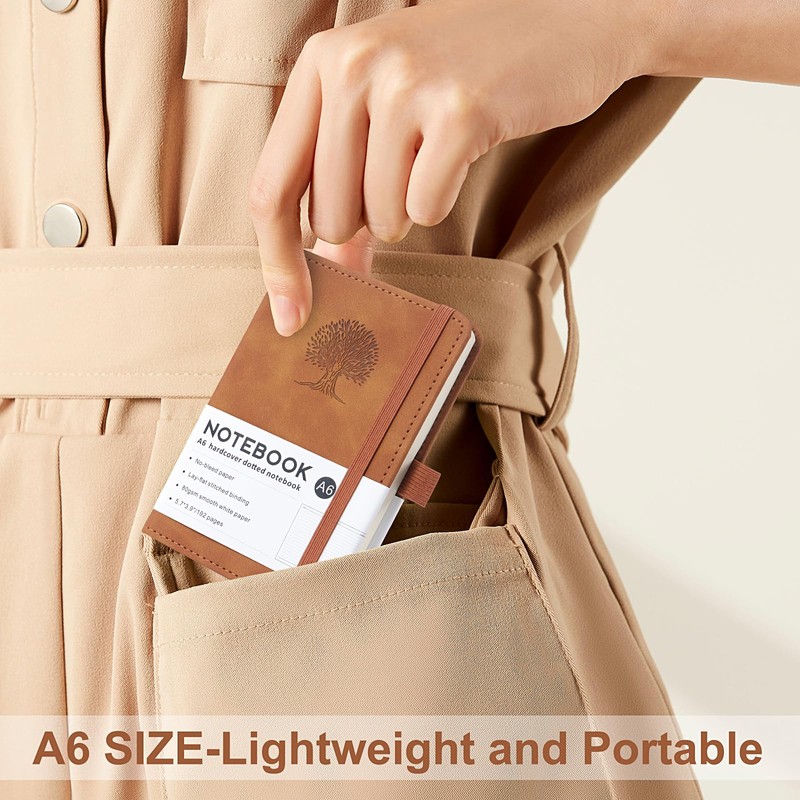 - 【Premium Embossed Tree Design Leather Cover】Journal Notebook Is Made Of Excellent-Quality PU leather With An Elegant Tree Embossed Cover. And The A6 Size Notebook Boasts Both Durability And Artistic Beauty. The Concave And Convex Textured Surface Is Scratch-Resistant And Wear-Resistant. The Hard Cover Provides Stable Writing Support, And The Rounded Corners Prevent Edge Wear And Conform, Allowing You To Hold It For Extended Periods Without Fatigue