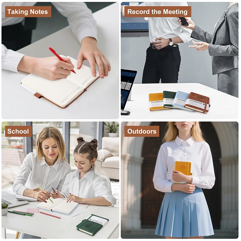- 【Multi-Functional And Portable Design】Memo Book Is Easy To Carry. The Elastic Strap Keep Page Damage During Travel. The Pen Insert Accommodates Various Pen Types. And The Ribbon Bookmark Quickly Locates Key Content. Weighing Just 276 Grams, it's Compact Enough To Fit Comfortably Into A Briefcase, Backpack, Or Coat Pocket. Write Comfortably Even In Airport Lounges Or Crowded Subways. For Students And Travellers