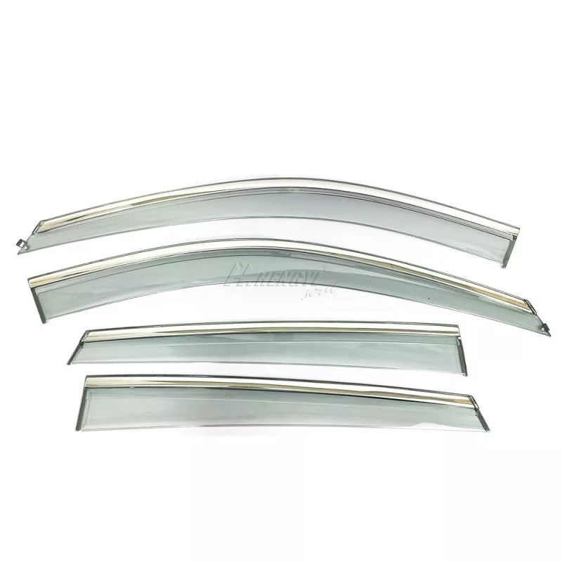 POLYCARBONATE (PC Transparent Material) Tape-on Smoke Tinted With Chrome Trim Wind Deflector, Rain Guard, Window Visor, Vent Deflecto