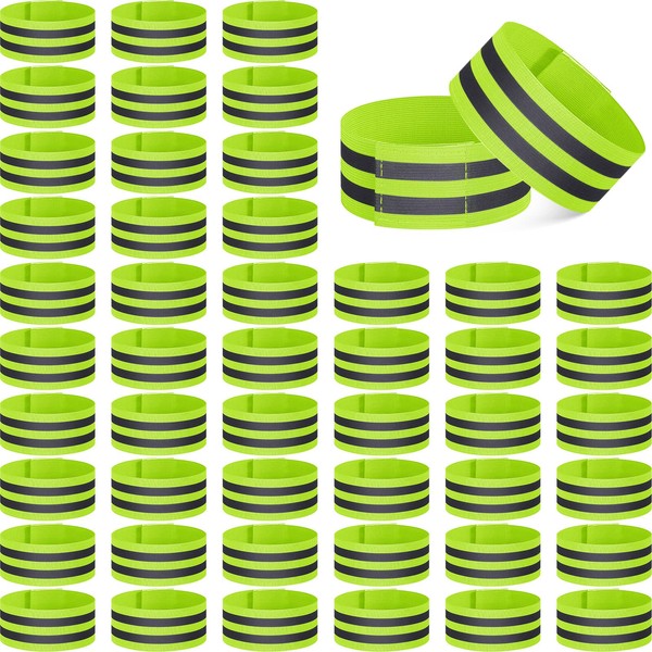 Zubebe 48 Pieces Reflective Bands Reflector Bands for Wrist, Arm, Ankle, Leg, High Visibility Reflective Gear Safety Reflector Tape Straps for Night Walking, Cycling and Running (Green)
