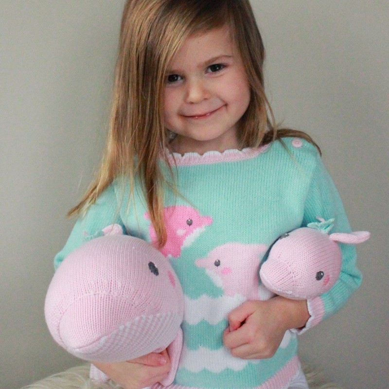 Zubels Baby Girls’ Dolly The Dolphin Plush Doll Toy, All-Natural Fibers, Eco-Friendly, 7-Inch Rattle
