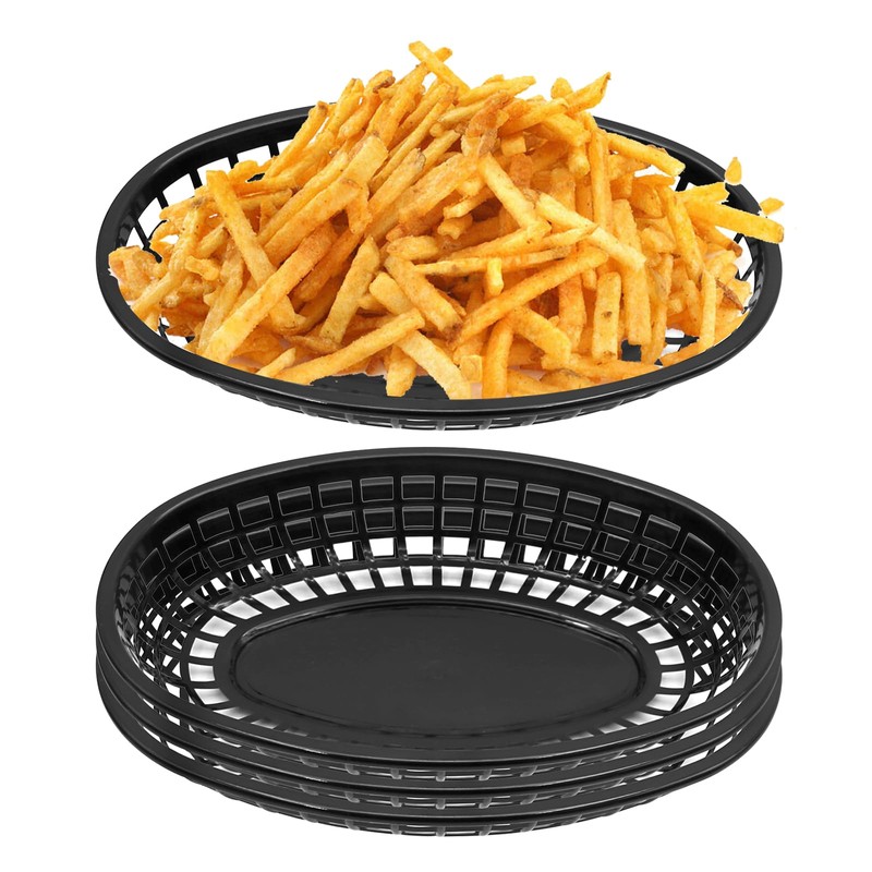 ZUDKSUY 4pcs Food Basket Food Basket Liners Plastic Storage Basket Fried Chicken Fries Fast Food Basket Dim Sum Afternoon Tea Basket (Black)