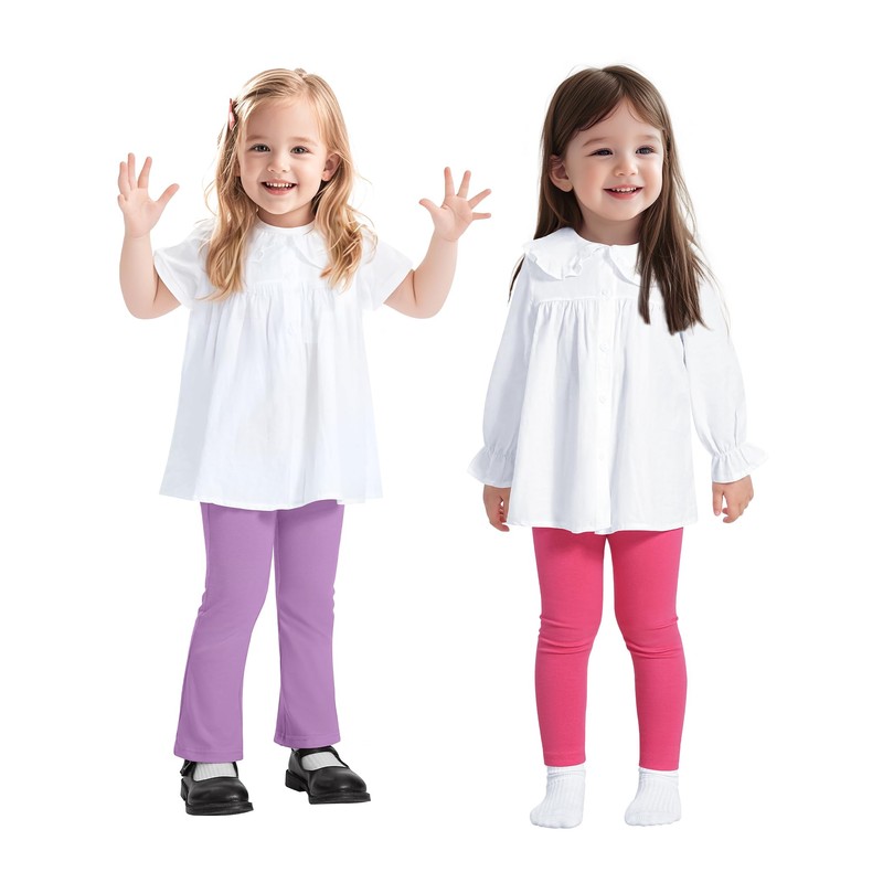 - What You Get: One toddler girl bell bottom pants and one toddler pencil leggings. Pencil leggings can be paired with oversized sweatshirts or long T-shirts to create a trendy look, while flared pants with cute tops can produce a sweet style, which is truly versatile sets