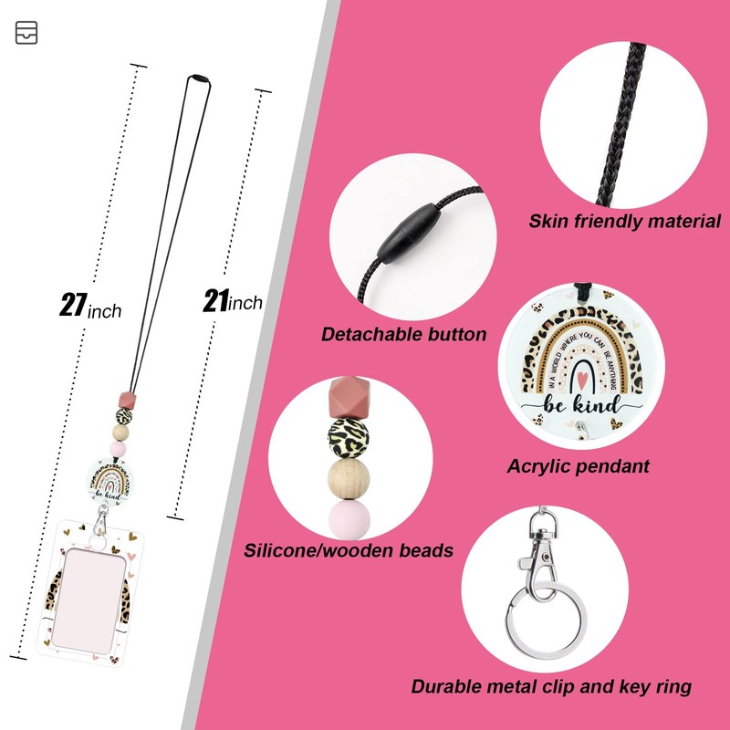 Zugzwang Teacher Lanyards for Id Badges and Keys, Cute Beaded Lanyard with Badge Holder for Women Teacher Nurse (Be Kind-B)