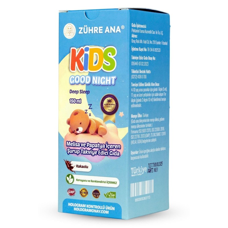 Zühre Ana® Kids Good Night Children's Sleeping Syrup, Sleeping Syrup Made of Lemon Balm and Chamomile, for a Peaceful Night, Memory to Strong, Natural and Rich Content (150 ml)