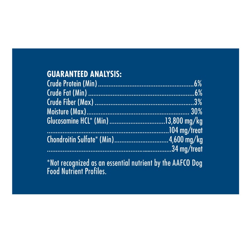 - Each soft and tender with peanut butter dog treat contains 104 mg of glucosamine for dogs and 34 mg of chondroitin for dogs to support joint health and mobility