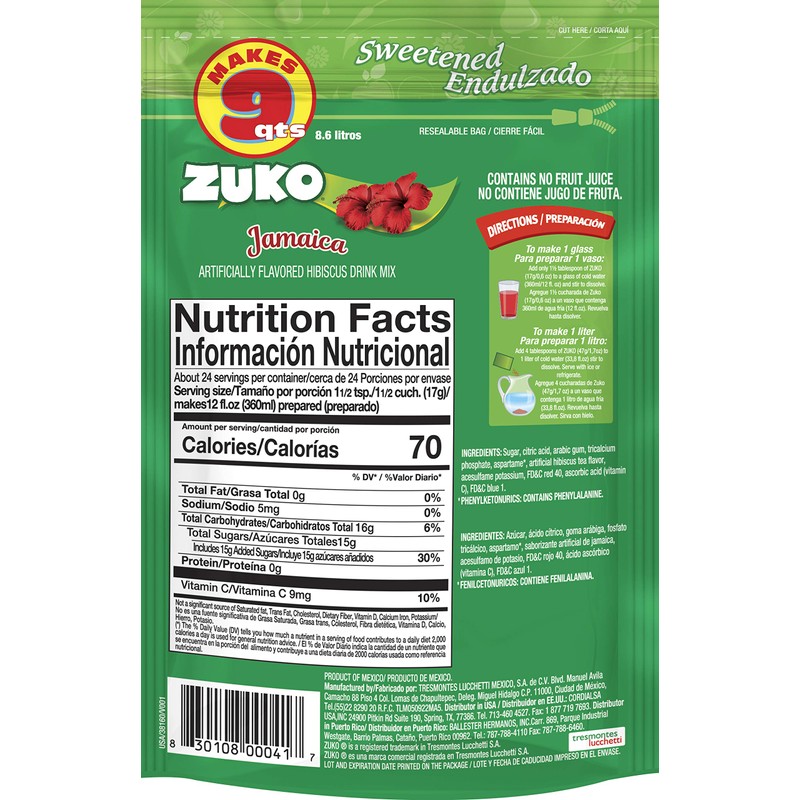 Zuko Jamaica Instant Powder Drink Family Pack, 14.1 oz, Pack of 6