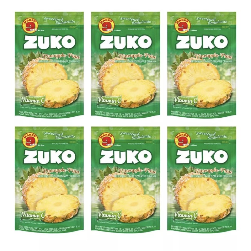Zuko Pineapple Pina Flavored Drink Mix 14.1 Oz.   6 pck