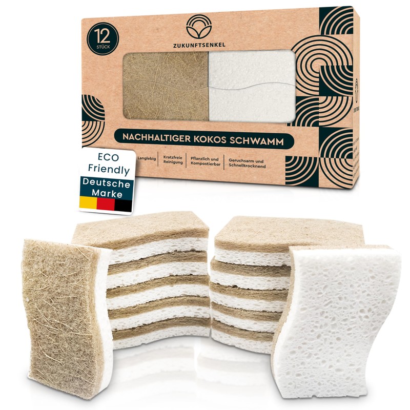 Zukunftsenkel Dishwashing Sponge Sustainable Kitchen Sponges Biodegradable Natural Sponge Environmentally Friendly Coconut Sponge (12), Nachhaltige Spülschwämme 12er