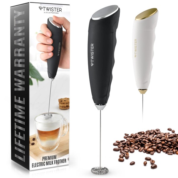 Zulay Kitchen Powerful Milk Frother Handheld - Easy-to-Grip Mini Froth - Twister-Design Mini Mixer for Powder Drinks - Coffee Frother Handheld & Mixer Electric Handheld - (Black/Silver)