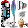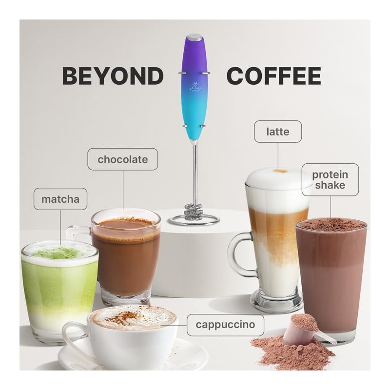 Zulay Kitchen Tornado Whisk Milk Frother Handheld - Coffee Frother Wand With Stand - Triple Whisk Hand Held Mixer - Electric Stirrer Frothing Wand for Latte, Matcha, Protein Powder - Purple Teal Fade