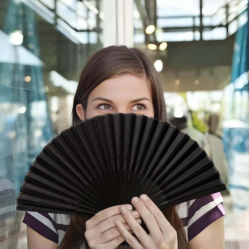 - Material: Made of high quality plastic and black nylon fabric, lightweight and durable fabric polished and refined; move the wrist to open the hand fan, which is easy to open and close smoothly.