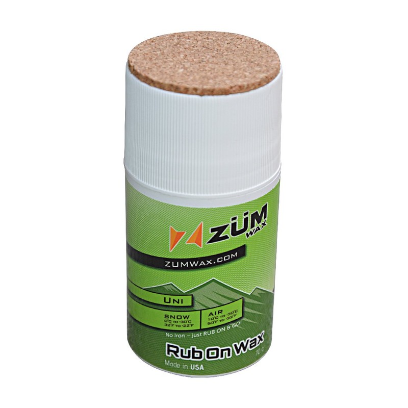 ZUMWax Rub-On Ski/Snowboard/Nordic/Cross-Country Wax 70g, UNIVERSAL, Easy cork applicator, long-lasting performance, secret vanilla scent, Made in USA, PFAS-free Great for quick waxing on the go