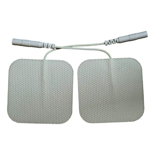 Este modelo de electrodos se utiliza en la mayoría de aparatos de electro estimulación que aceptan conectores estándar (Conocidos como Electrodos de cola de Ratón)