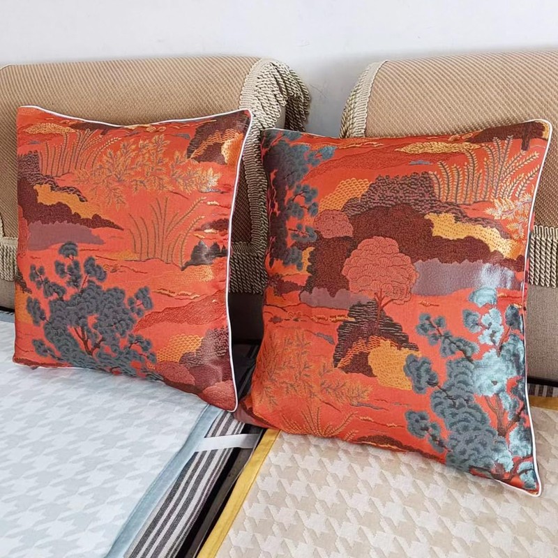ZUODUTEX 45 x 45 Cm Cushion Covers Orange Embroidery Geometry Faux Silk Decorative Throw Pillow Cover Easy Match Jacquard Cushion Case Pillow Case (pattern3, 1)