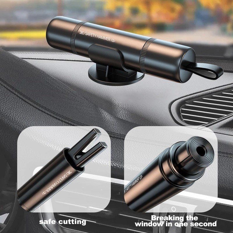 - 2 in 1 emergency hammer car with belt cutter: the car emergency hammer hard, sharp hammer head is made of tungsten steel to quickly hammer window panes in emergencies. The tail has a hidden blade to cut the seat belt. Even under water, our safe hammer can easily break glass without being affected by water pressure