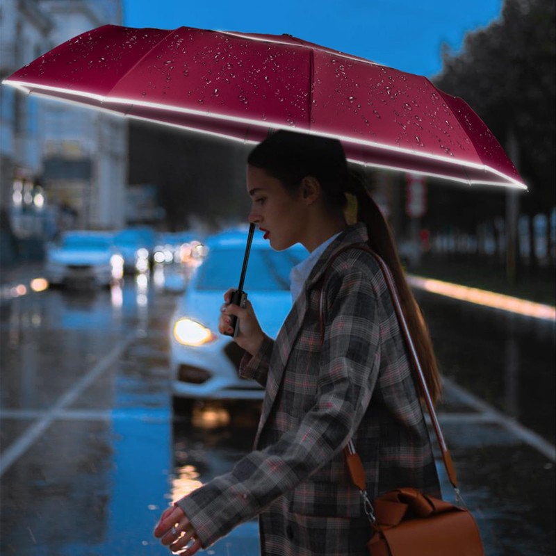 ZUOYOUZ Windproof Travel Umbrella,10 Ribs Folding,Lightweight,Sturdy,Strong and Automatic Vented Double Canopy Easy Automatic Open/Close Reflective Strip Umbrella for Men & Women
