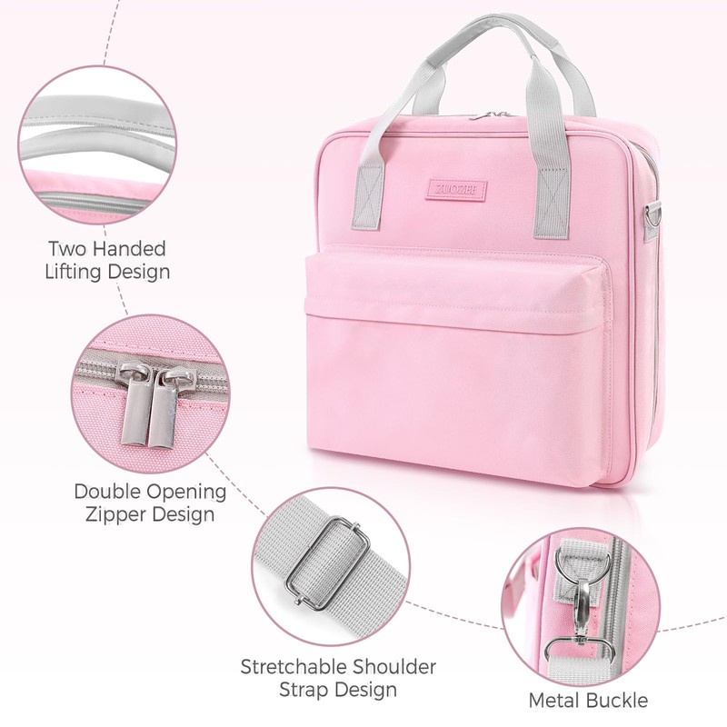 Zuozee Zipper Binder 3 Ring with Shoulder Strap and Handle, Pink 2 Inch 3 Ring Binder with Zipper, Extra Pockets Holds 500 Sheets, Waterproof Trapper Keeper for Middle School & Work Organizer