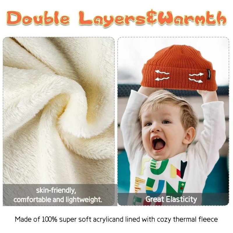 - Soft & Warm Material: Our warm & cozy baby beanie is made of quality acrylic and lined with soft fleece, and will provide added warmth by trapping heat underneath while preventing the cold air from entering. Our thick baby/kids winter beanies hat is warm and soft enough to keep your baby comfortable in the cold.