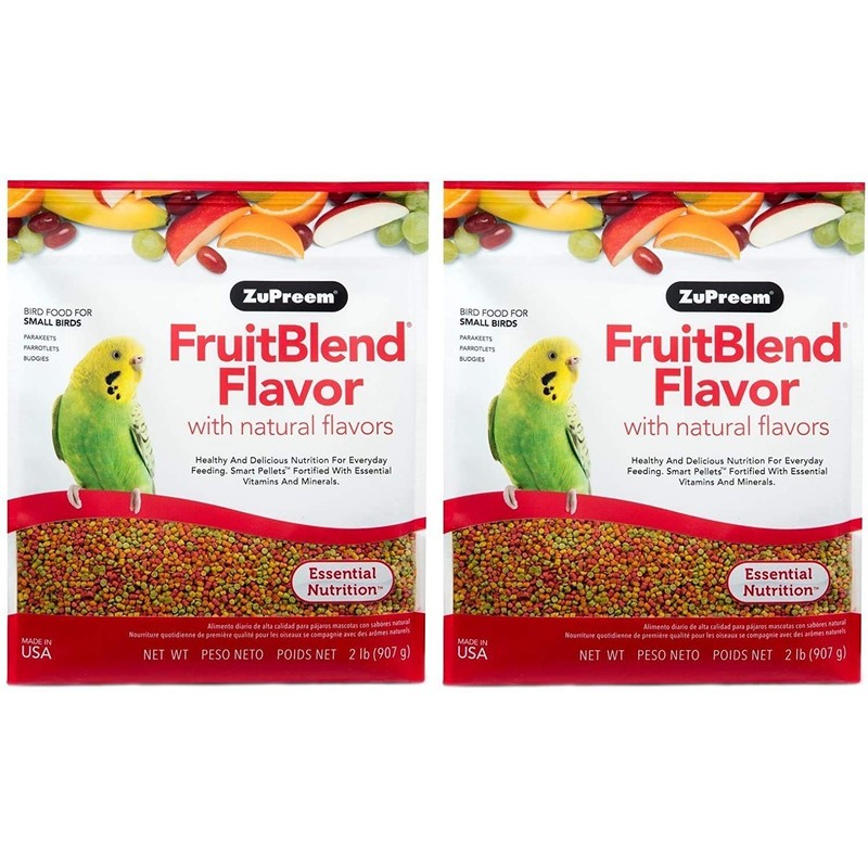 ZuPreem FruitBlend Flavor Pellets Bird Food for Small Birds, 2 lb (Pack of 2) - Daily Blend Made in USA for Parakeets, Budgies, Parrotlets