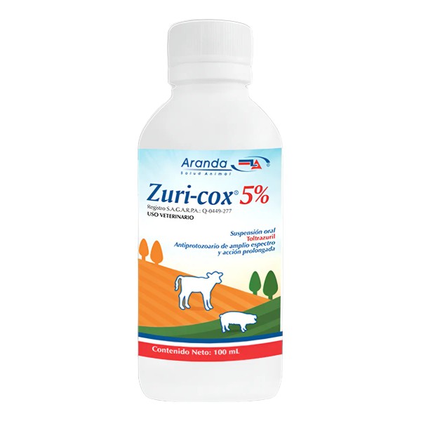 Zuri-cox 5% está indicado para el tratamiento de protozoarios. Debido a su amplio espectro es eficaz contra todas las especies de coccidias (Eimeria spp., Isospora spp., Neospora spp. y Sarcocystis spp.) de los mamíferos.