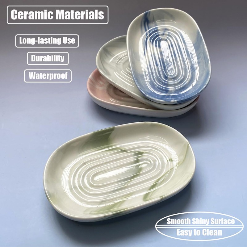 - 【Long-lasting Use Ceramic Materials】: Our soap saver made of premium porcelain ceramic materials which resistant to water,heat and withstand daily use,these bathroom soap holders are durability, waterproof and dishwasher safe.The smooth,shiny surface is easy to clean, avoid soap scum and grime