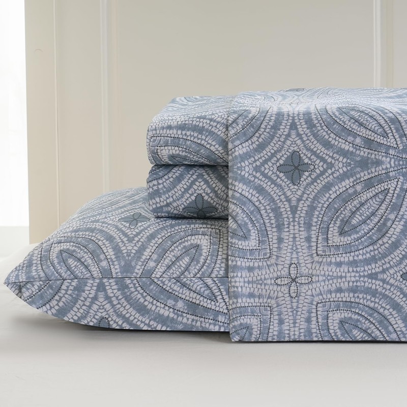 Zusbest Queen Sheet Set 100% Percale Cotton Grey Printed Bed Sheet Set, Brushed for Extra Softness, Luxury Flannel Like Sheets Modern Classic Navy Printed Deep Pocket Sheets 17.5'' 4 Pcs
