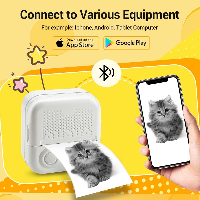 • Educational and Entertaining: The Mini Sticker Printer offers more than just printing capabilities. It features an app with game templates that can be printed out, allowing children and adults alike to engage in educational activities such as counting, mazes, puzzles, calculations, coloring, alphabet learning, and card recognition. Take learning to the next level and enjoy interactive games with friends or parents. Print pictures from your phone directly.