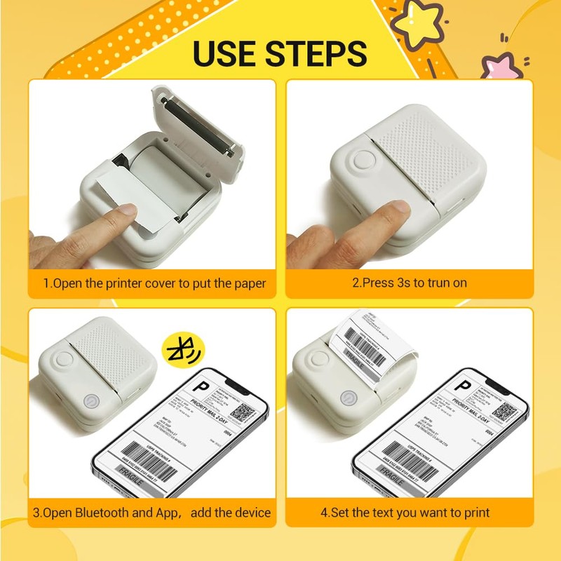 • Portable and Convenient: Designed as a mini sticker printer, the printer is compact and lightweight, making it easy to carry around. Whether you need to print photos, pictures, study notes, to-do lists, or customize bookmarks, labels, journals, or greeting cards, this portable printer is perfect for on-the-go printing.
