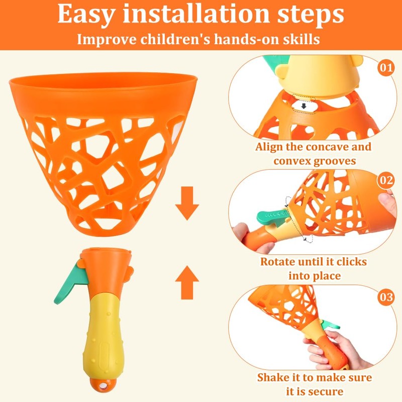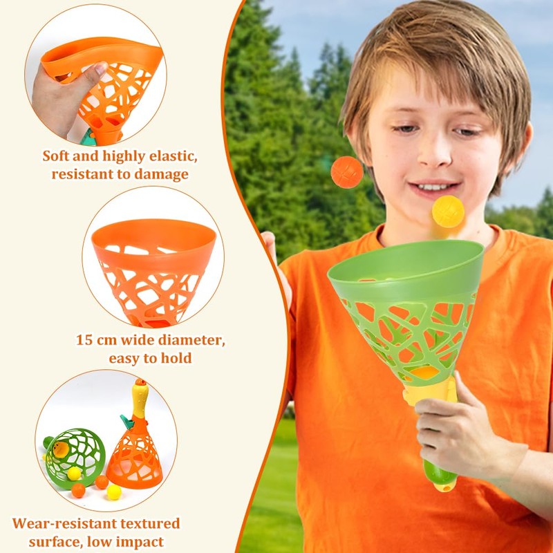 - High-quality safety and durability guaranteed: Made of shock-resistant PP plastic with non-slip, non-slip surfaces. The catching cups have a nest shape with 20% larger catching surface than standard models - guaranteed successful ball recordings. Special feature: extra light balls with optimised bounce. The non-slip structure on the surface of the ball and the design with deep club head effectively reduce falling, increase the success rate
