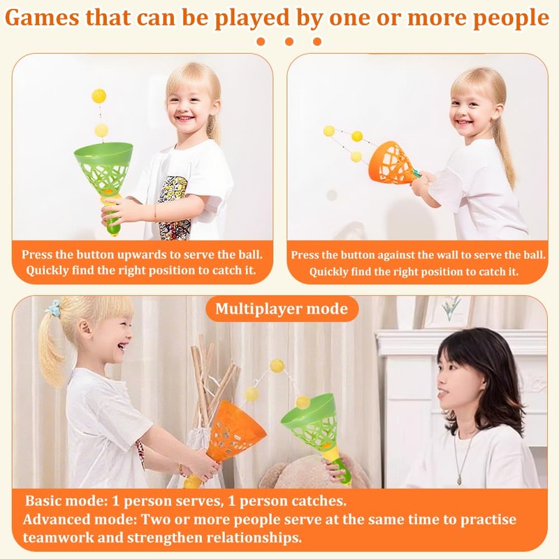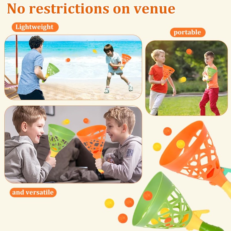 - Ideal gift for active child development: the perfect gift for children's birthdays, Christmas or children's day. This catch ball game has been proven to promote hand-eye coordination, motor skills and social cooperation through playful throwing and catching. The contrasting colour combination (green/orange vs. Yellow/Orange) supports visual perception during ball catch game duels. Ideal as outdoor games for children in the park, on the beach or in the garden