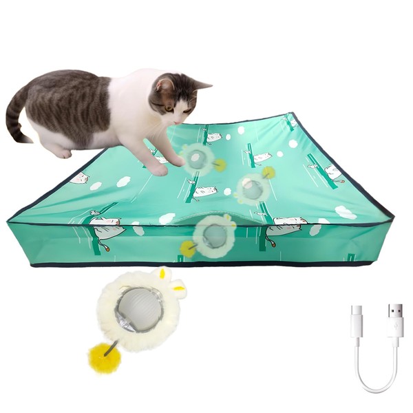 - 【And Durable Material】Designed For Indoor Use, Hide And Seek Cat Toy Encourages Physical Activity,Cat Mat Toy Colorful Square Hunting Bag Adopts Oxford Fabric Cutting Technology, And The Other Side Of The Cover Is Made Of Artificial Leather, Which Is Thick And Wear. The Bottom Is Flatter And Can Withstand The Fierce Pulling And Biting Of Cats. Rolling Cat Toy Elastic Ball Is Made Of High-Quality Plush And Tpu Material, Which Is Sturdy And Durable. Interactive Cat Toys Are The Most For Cats During Festivals.