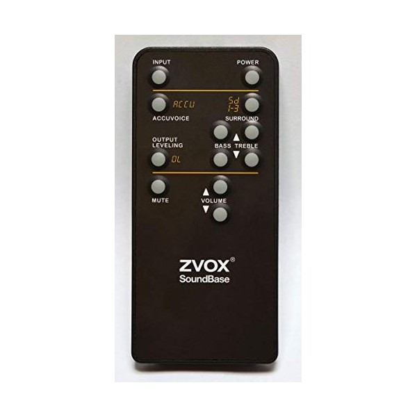 - Replacement remote control for ZVOX speakers with single levels of AccuVoice/Dialogue Emphasis.