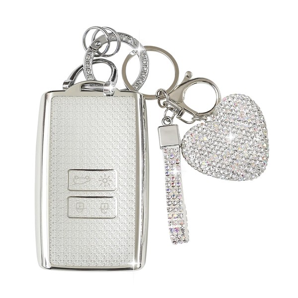 ZVRSUA Car Key Case Fits Renault, Car Key Protective Case with Gliter Love Key Fob Compatible with Renault Koleos Kadjar Megane Captur Espace, silver