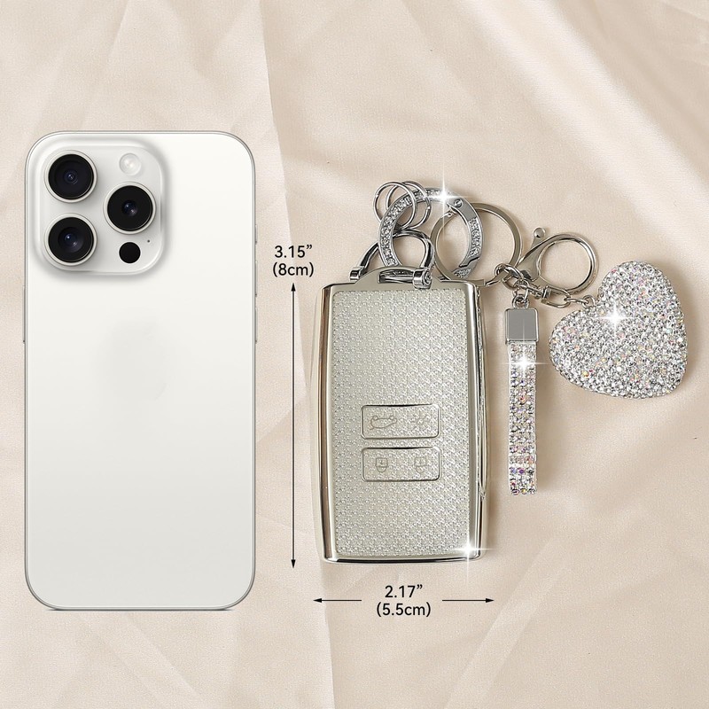 - Unique car accessory: the car key case set comes with a heart-shaped key ring with sparkling rhinestones. The combination of glitter and cuteness is a great gift for women, it shows your personality and makes it easier to find your car keys