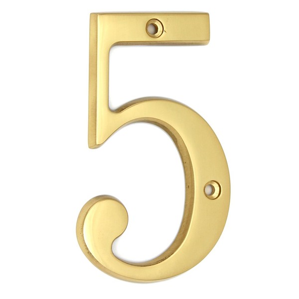 ZW Hardware A100 4 Inch Bright Brass House Number 5