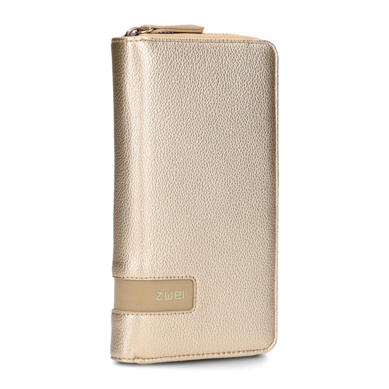 Zwei Large Women's Wallet M.Wallet MW2 Soft Faux Leather Wallet with Zip Around 15 Card Slots, 2 Note Compartments, Coin Compartment & Viewing Compartment, gold, Modern