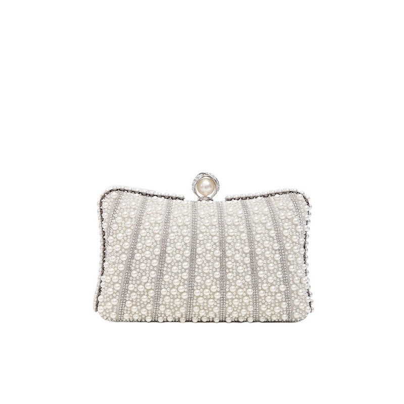 Zweig & Ewigkeit Elegant Silver Pearl Rhinestone Clutch Bag, White