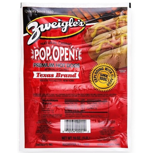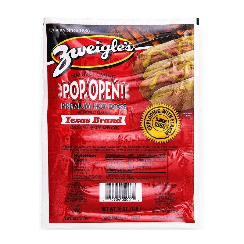 Zweigle's Natural Casing Pop Open Red Hot Dogs 7 lbs $89.00 Shipping Included