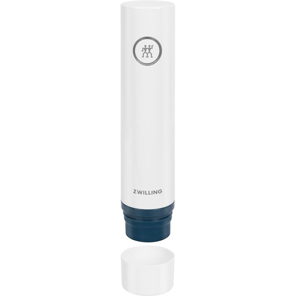 - DELIVERY PACKAGE: 1x ZWILLING vacuum pump, white-La Mer, Ø 4.5 cm, H 19.5 cm, long-life lithium-ion battery 3.7 V, 1200 mA, charger cable with USB 2.0 type A, micro-USB, cable length 0.3 m, high-gloss ABS plastic, vacuum attachment made of food-grade silicone, 1009476.