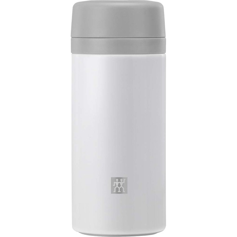 ZWILLING Thermo Thermoflasche, Integrierter Siebeinsatz, Isolierflasche für Tee & Infused Water, Doppelwandisolierung, 420 ml, Höhe: 17,2 cm, Weiß