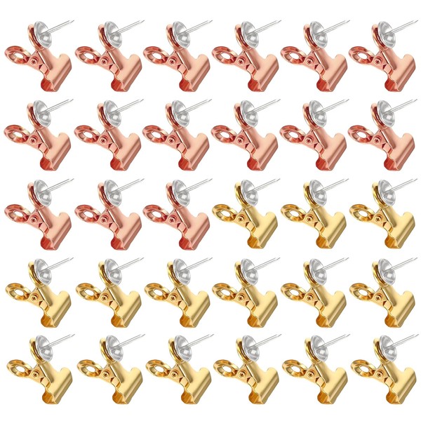 ZWYYW 30 Pieces Push Pins Clips for Bulletin Board, Metal Push Pins Clips, Bulldog Clips with Thumb Tacks for Cork Board Photos Documents No Holes for The Paper on Cubicle Walls, Rose Gold/Gold