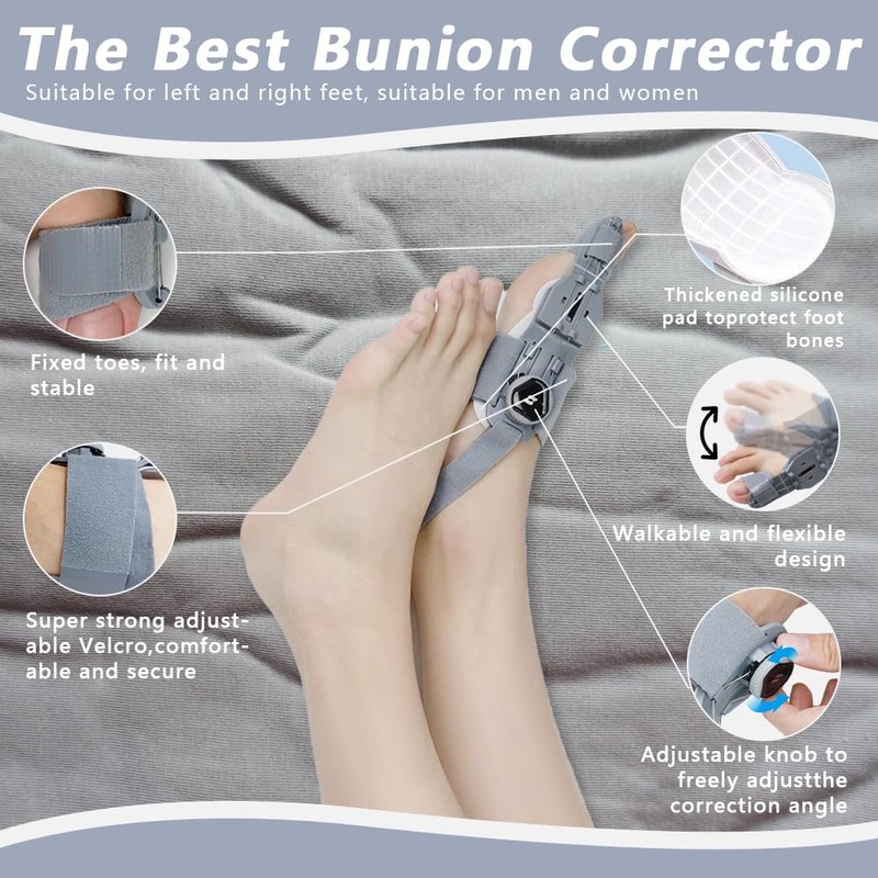 zxbaers Bunion Corrector for Women & Men, Adjustable Bunion Splint for Bunion Relief, Bunion Fix with Anti-slip Heel Strap and Silicone Pad, Suitable for Left and Right Feet.