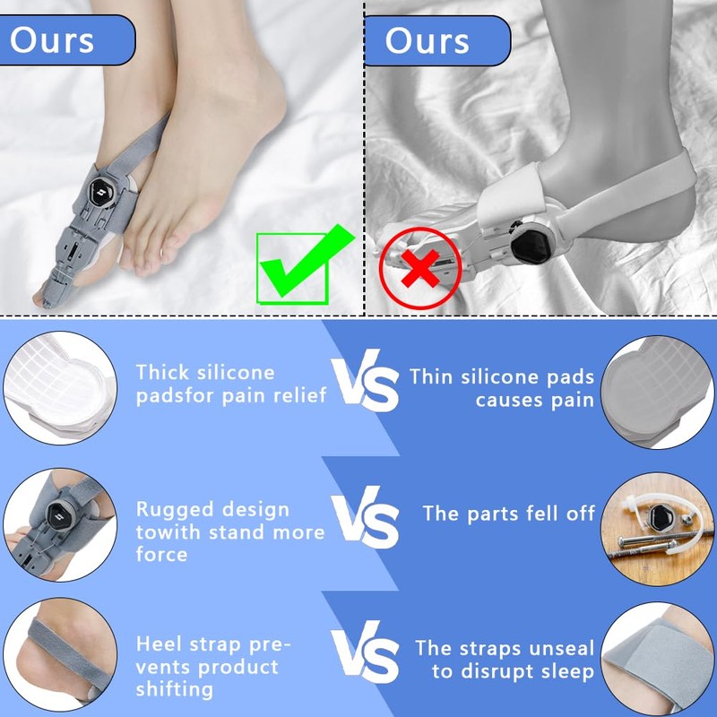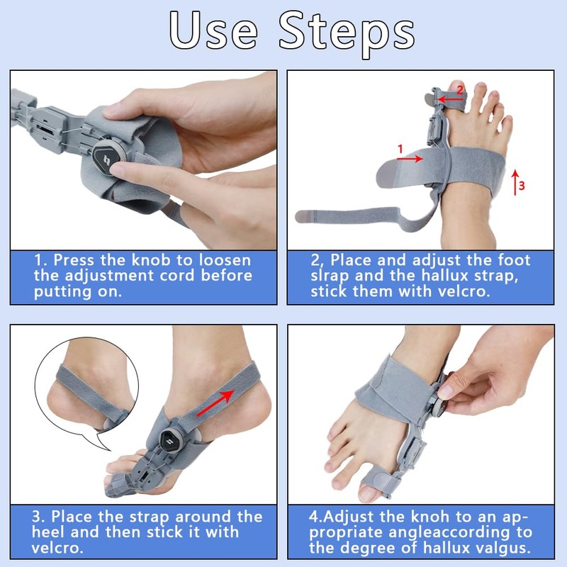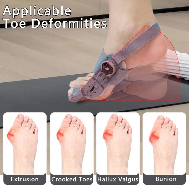 - 【Applicable Symptoms】This bunion brace, ideal for both men and women, is not limited to bunions. It's also beneficial for a variety of foot problems, including overlapping toes, hammer toes, and misaligned toes. Its adjustable functionality makes it effective for both moderate and mild bunions. It's suitable for overnight wear at home without shoes. (10 minutes is recommended for initial use, and then gradually increase the length after getting used to it for best results.)