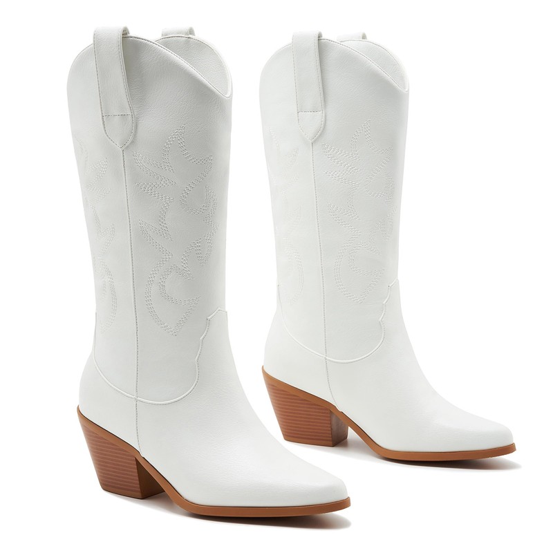 - Classic Design: With a beautifully embroidered pattern, an almond-shaped toe, and an appropriate heel height (2.56 inches), this perfect white boot allows you to add extra height without any discomfort. It makes your matching dresses, shorts, and skirts more elegant.