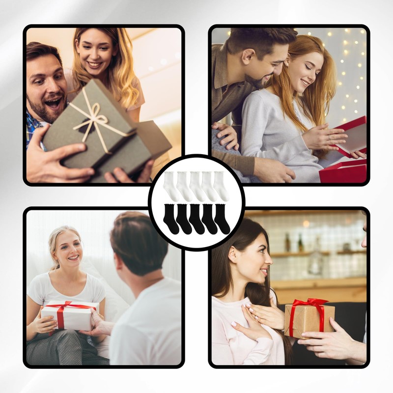 ZXJLWR Women's Ruffle Socks, 5 Black and 5 White Socks with Ruffles, Comfortable Ruffle Socks, Size 36-42 Knitted Socks, Trainer Socks, Ideal for Leisure and Office