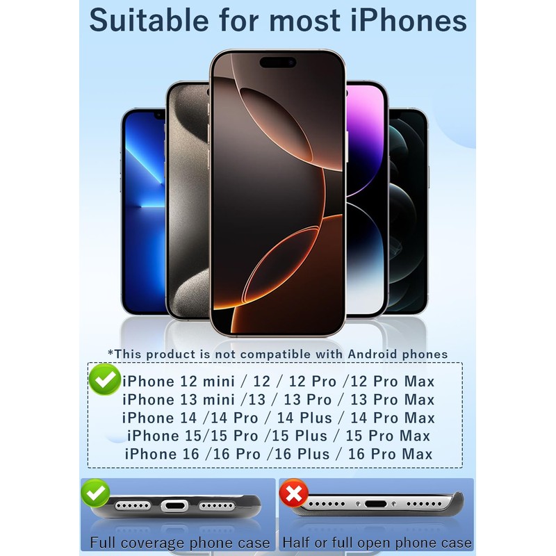 • Compatibility: The iPhone hang designed for iPhone1615 141312 SeriesiPhone16/16 Plus/16 Pro/16 Pro Max/ iPhone15/15 Plus/15 Pro/15 Pro Max/ iPhone14/14 Plus/14 Pro/14 Pro Max / iPhone 13 mini/ 13 /13 Pro/13 Pro Max/ iPhone 12 mini/ 12 /12 Pro/12 Pro Max Note: This product only compatible with full cover iphone cases with two speakers holes !