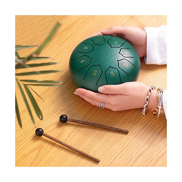 ZXZYHFTY Steel Tongue Drum, 6 Inch 8 Note Steel Hand Drum with Bag, Music Book, Drumsticks, Mallet Holder and Finger Paddles, for Camping, Meditation or Yoga .(Green)